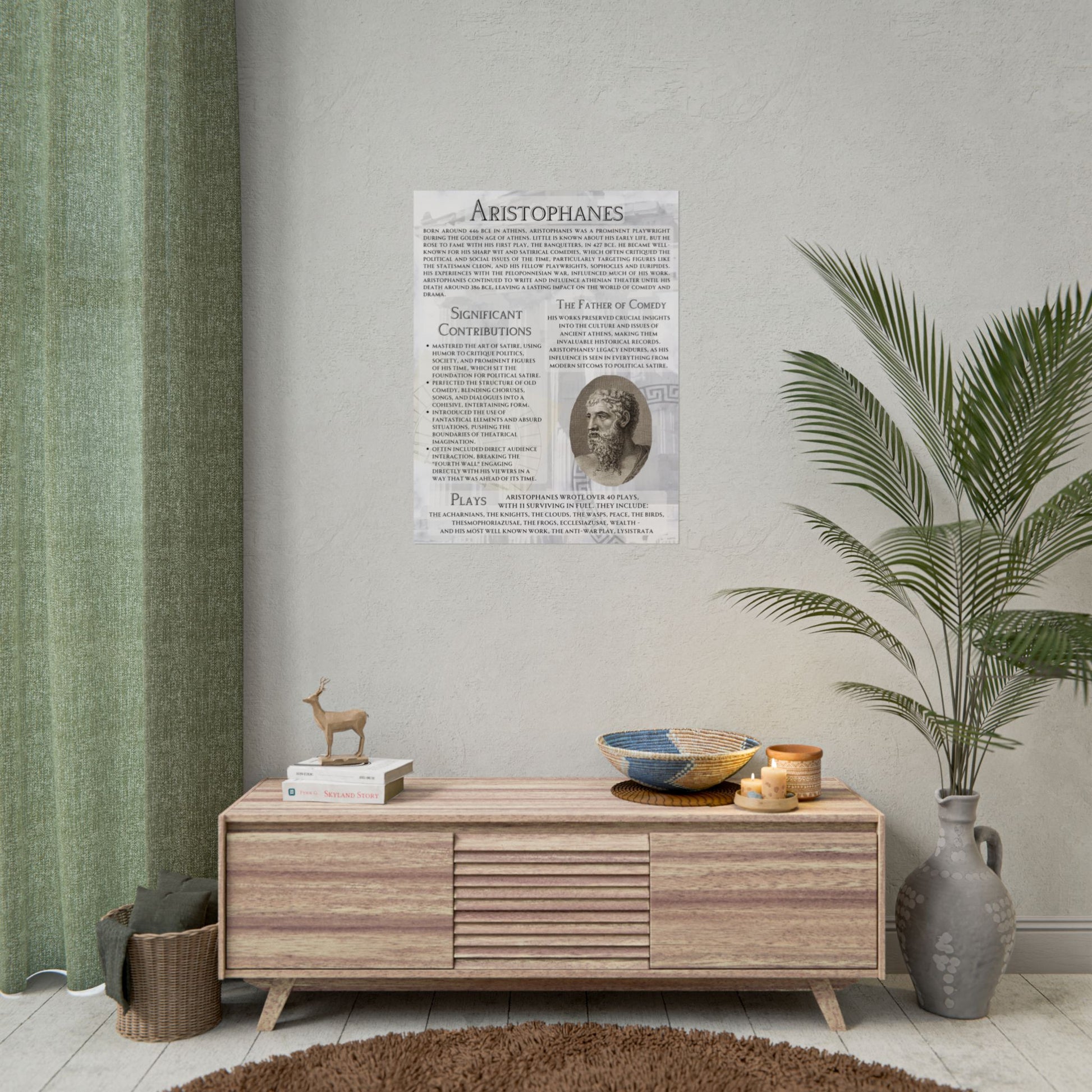 Bring humor, satire, and political insight into your classroom with this striking Aristophanes poster. Widely regarded as the Father of Comedy, Aristophanes' plays still influence modern satire and theater.