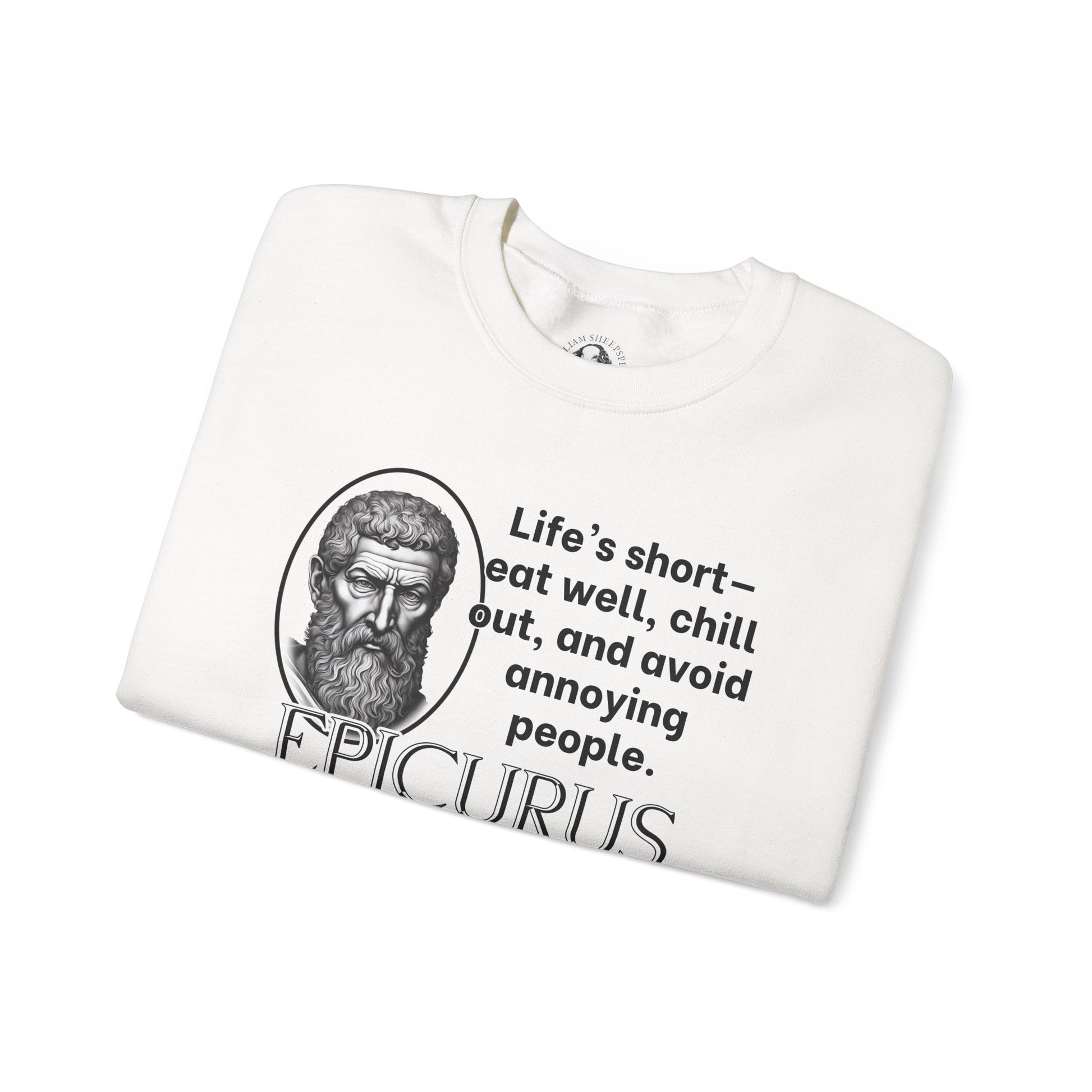 Epicurus Funny Philosophy Sweatshirt - Lifes Short, Eat Well & Avoid Annoying People - Ancient Greek Humor Tee