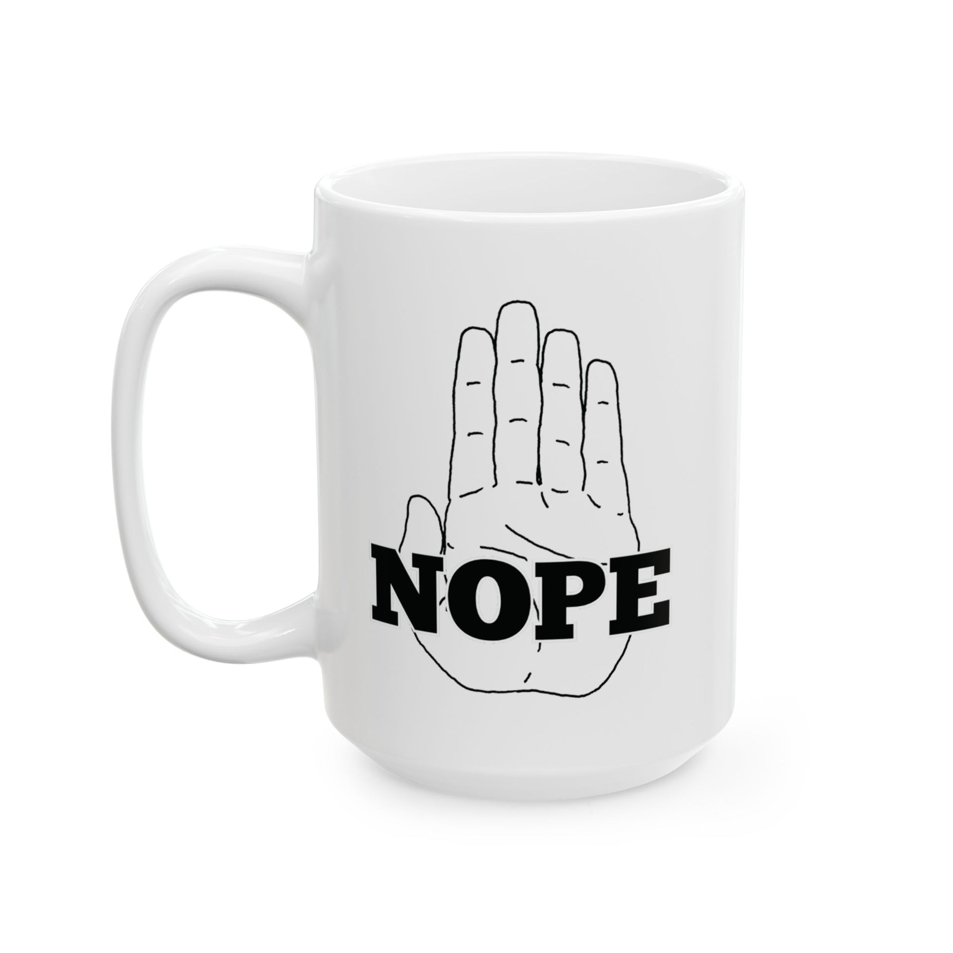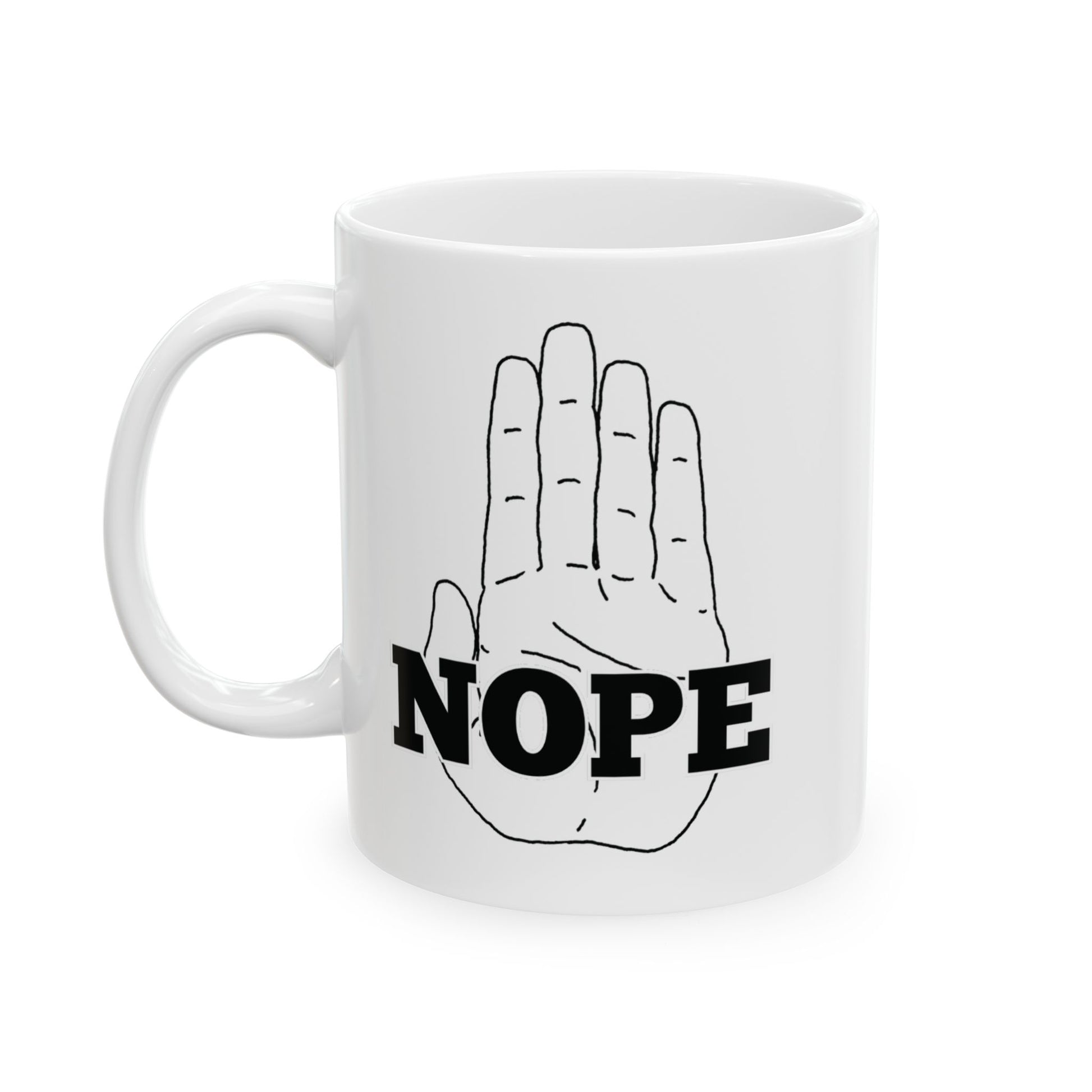 Funny, Sarcastic Mug - "Nope" with an upheald hand - Setting Boundaries, Drawing a line, Ceramic Mug, (11oz, 15oz)