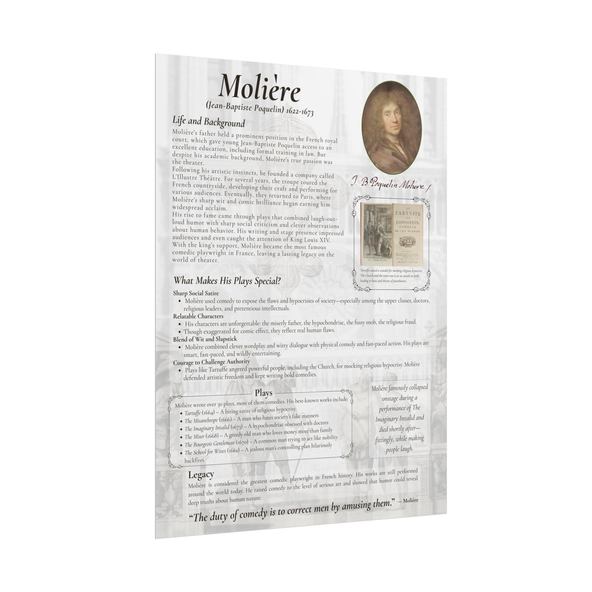 Molière Educational Poster - French Comedy Playwright Wall Art for Classrooms & Theater Fans (18x24 or 24x36)