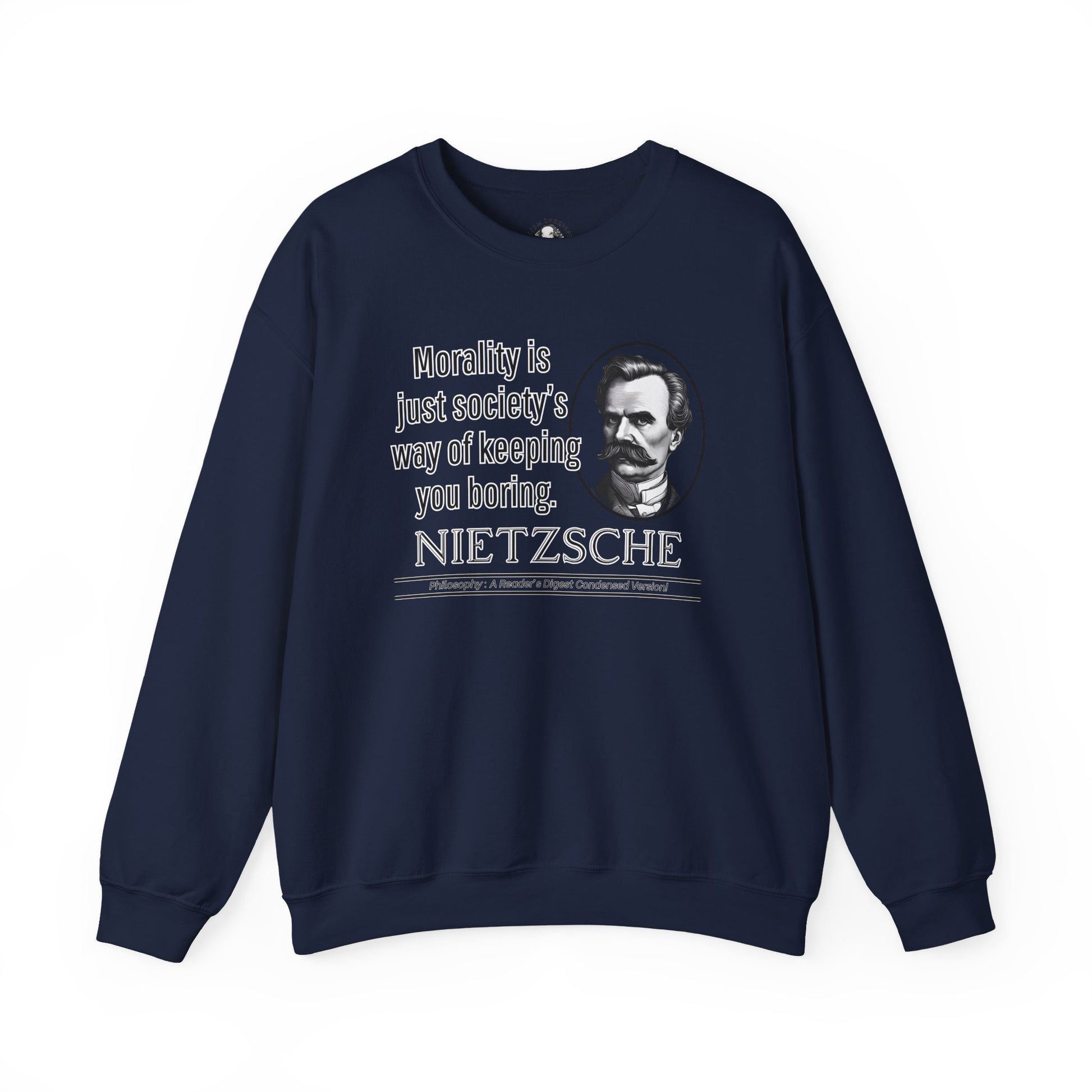 Nietzsche Sweatshirt - Funny Existentialist Quote Tee - Morality Is Just Societys Way of Keeping You Boring - Edgy Philosophy Humor