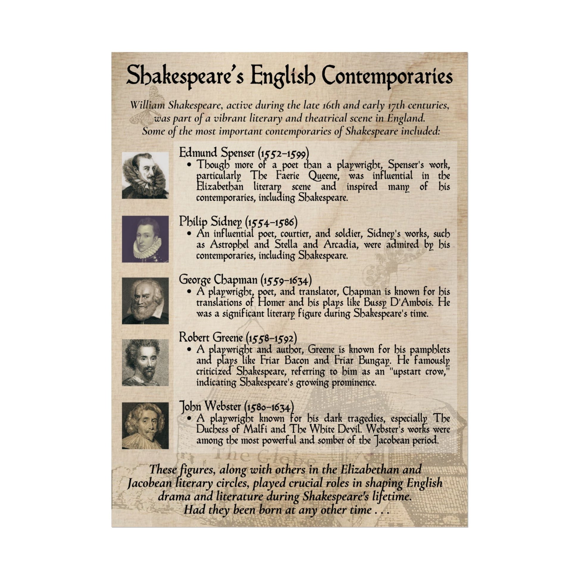 Shakespearean Playwrights Wall Art 2, Historical Theater Decor, London Playwrights Prints, Literary History Decor, Rolled Prints
