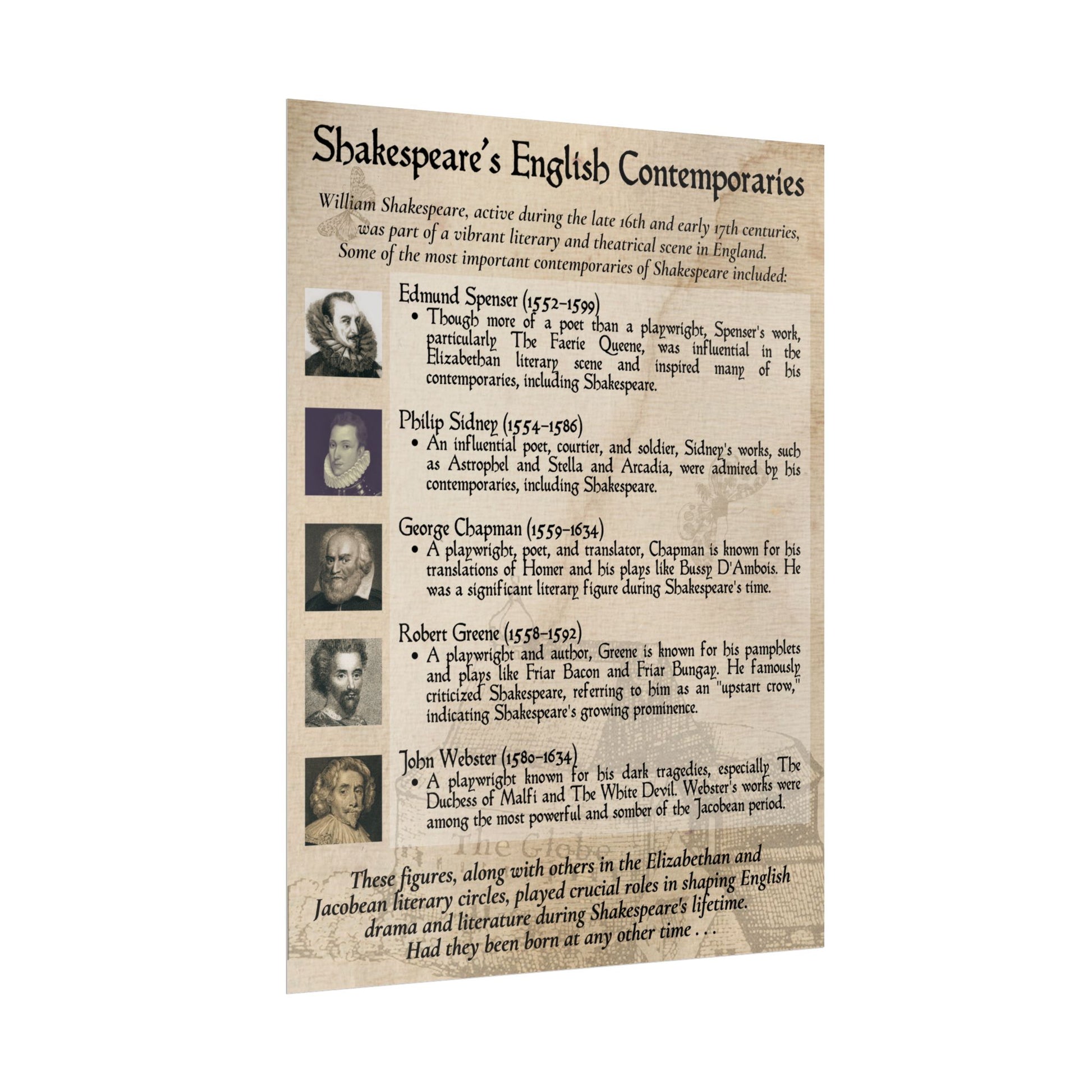This poster is perfect for history buffs and literature enthusiasts, featuring one of two posters introducing the other playwrights working in London during Shakespeare's time. The semi-glossy paper options ensure sharp color fidelity, archival quality, and a textured surface. Bright and intense colors that won't fade make this poster a must-have for anyone interested in Renaissance-era playwrights.